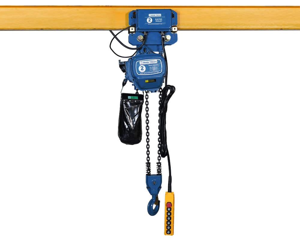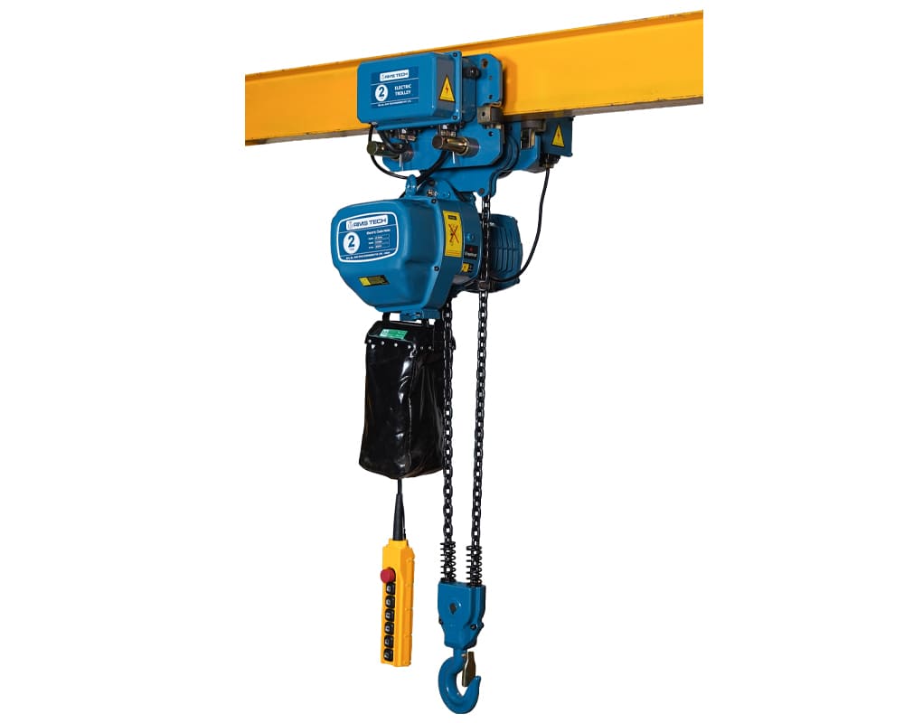 The Electric Chain Hoist with Trolley provides both vertical lifting and horizontal load movement. It improves productivity and efficiency with smooth travel, strong construction, and safe operation for industrial applications.